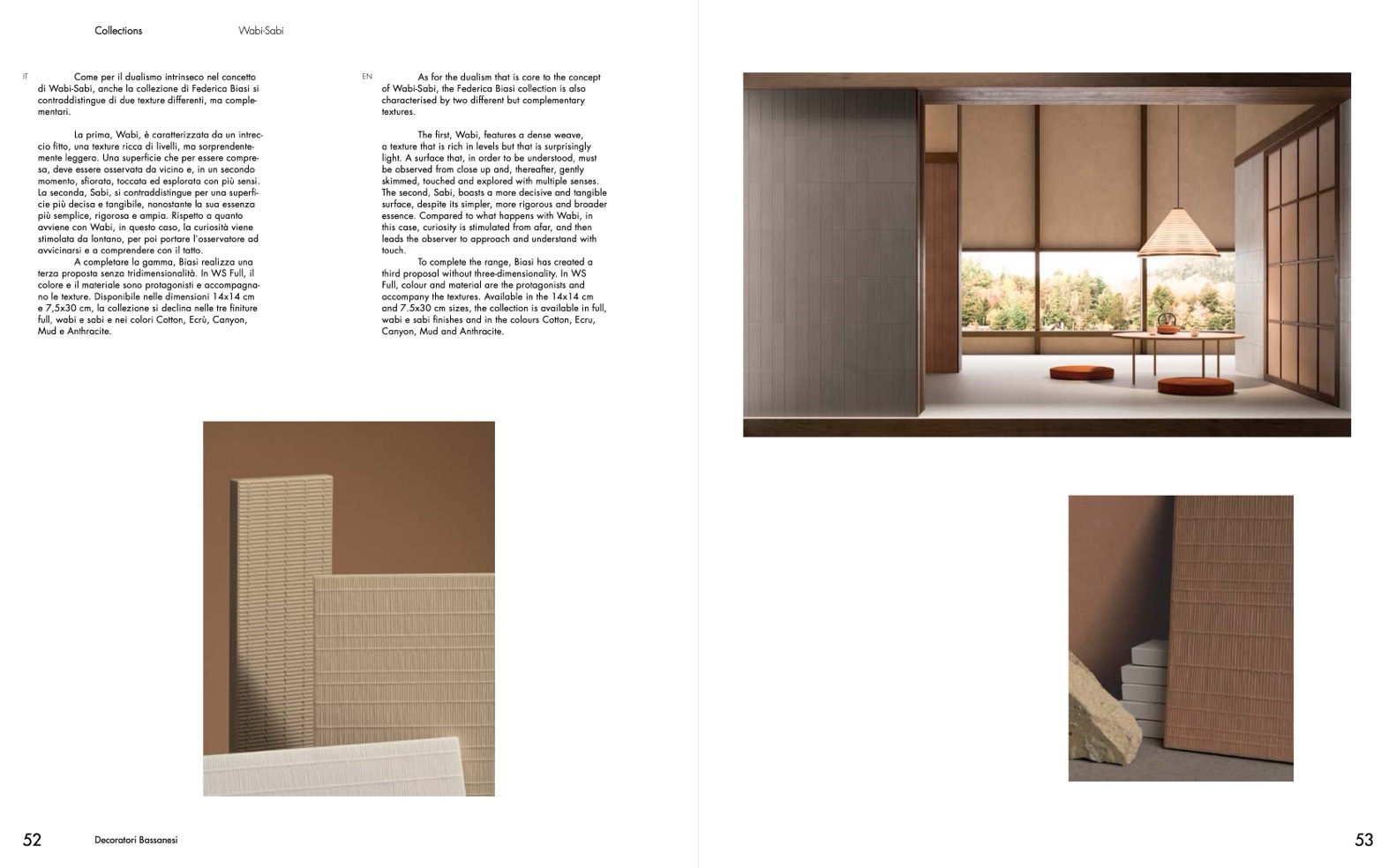 wabi e sabi finishes and in the colours Cotton, Ecru,
