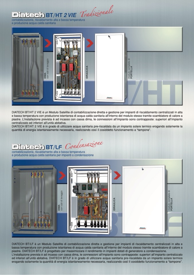 DIATECH BT/HT 2 VIE è un Modulo Satellite di contabilizzazione diretta e gestione per impianti di riscaldamento centralizzati in alta