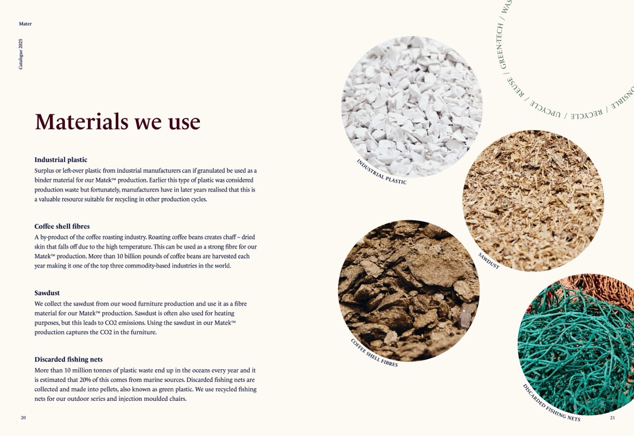 We collect the sawdust from our wood furniture production and use it as a fibre