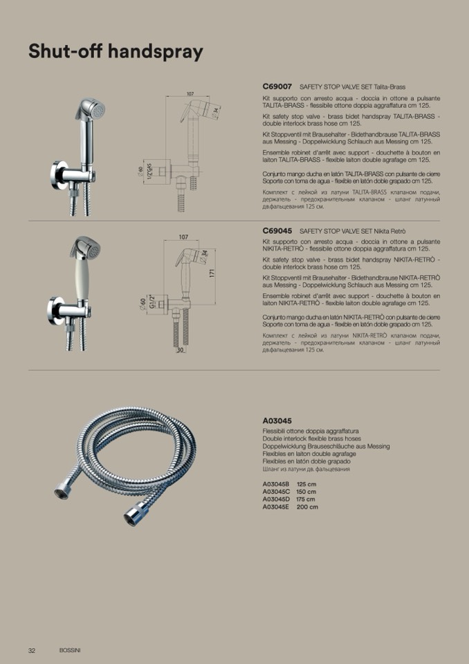 Kit safety stop valve - brass bidet handspray NIKITA-RETRÒ -
