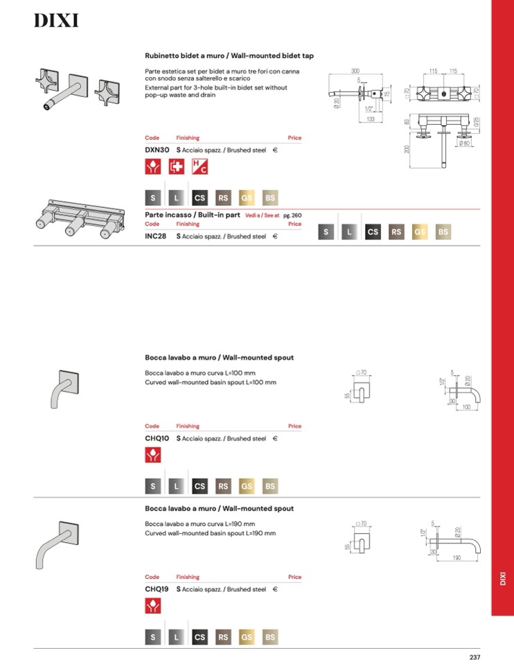Rubinetto bidet a muro / Wall-mounted bidet tap