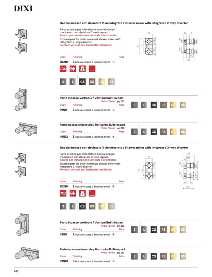 Doccia incasso con deviatore 3 vie integrato / Shower mixer with integrated 3-way diverter