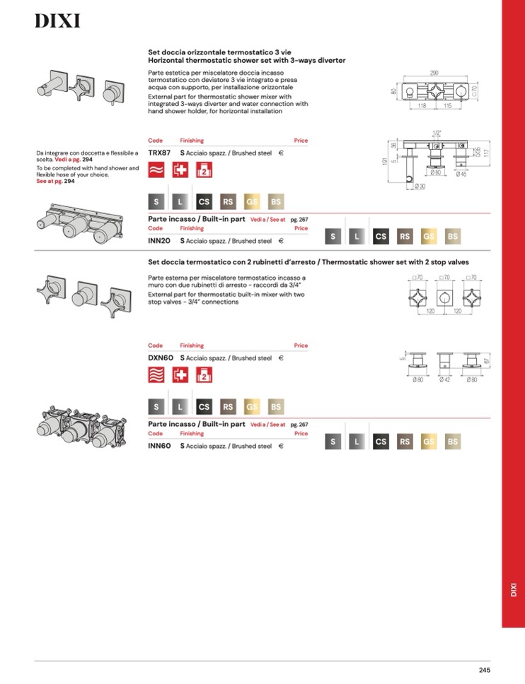 Set doccia termostatico con 2 rubinetti d’arresto / Thermostatic shower set with 2 stop valves