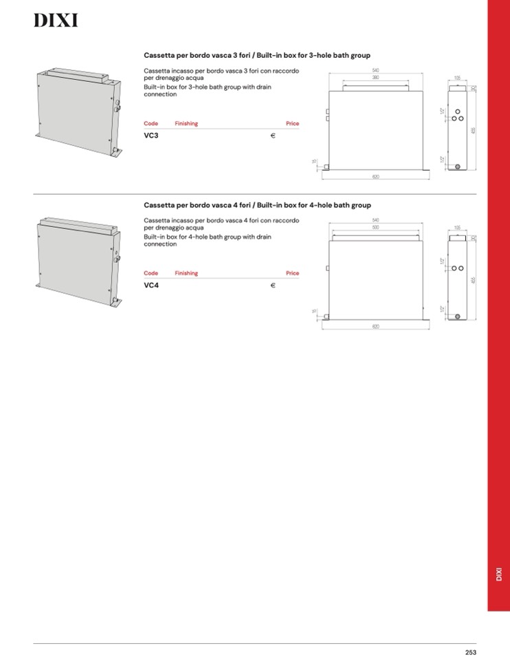 Cassetta per bordo vasca 4 fori / Built-in box for 4-hole bath group