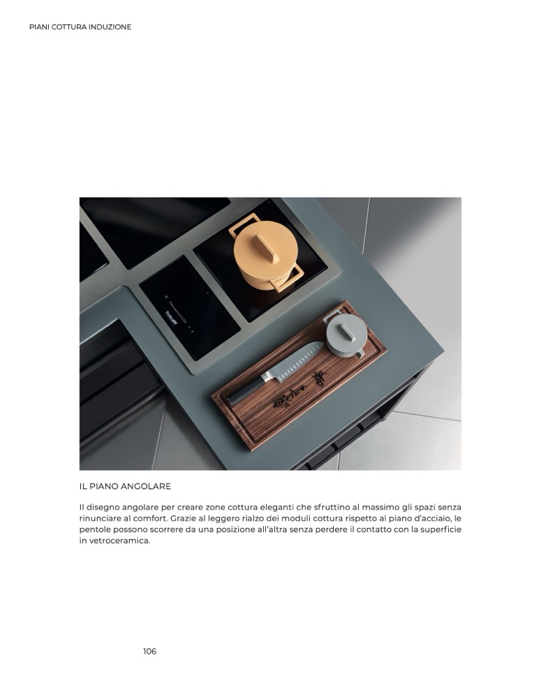 rinunciare al comfort. Grazie al leggero rialzo dei moduli cottura rispetto al piano d’acciaio, le