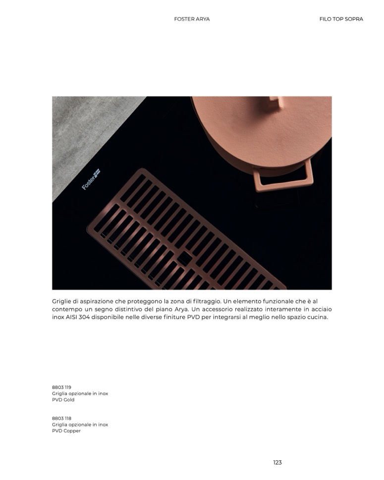 inox AISI 304 disponibile nelle diverse finiture PVD per integrarsi al meglio nello spazio cucina.
