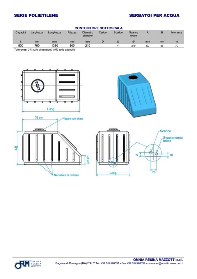 Tolleranze: 3% sulle dimensioni; 10% sulle capacit