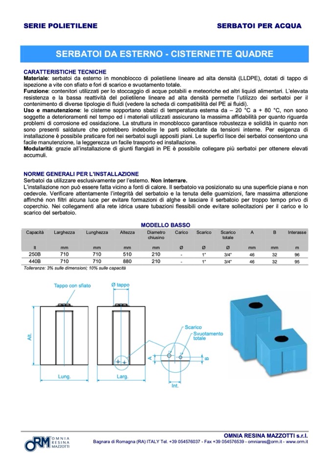 Uso e manutenzione: le cisterne sopportano sbalzi di temperatura esterna da – 20 °C a + 80 °C, non sono