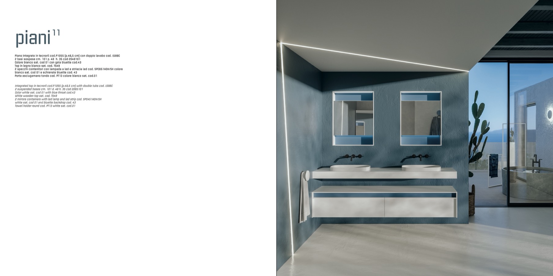 Integrated top in tecnoril cod.P1055 (p.48,5 cm) with double tubs cod. L58BC