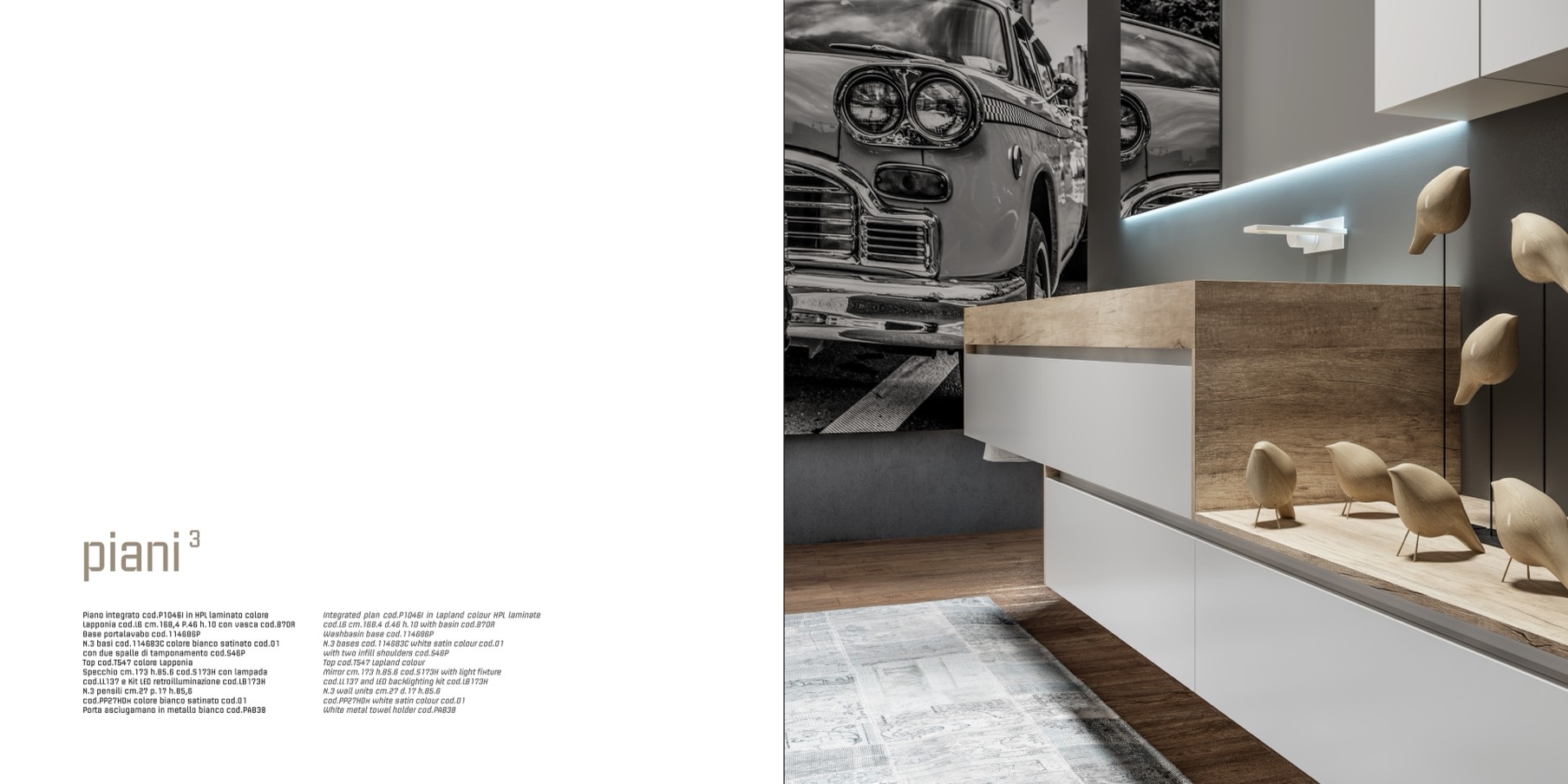 Integrated plan cod.P1046I in Lapland colour HPL laminate