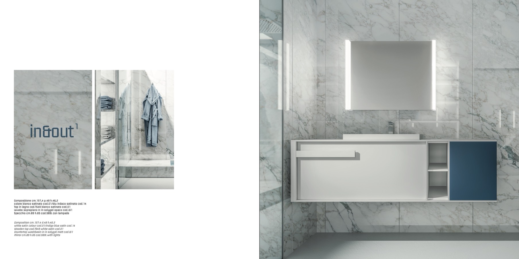 colore bianco satinato cod.01/blu indaco satinato cod.14