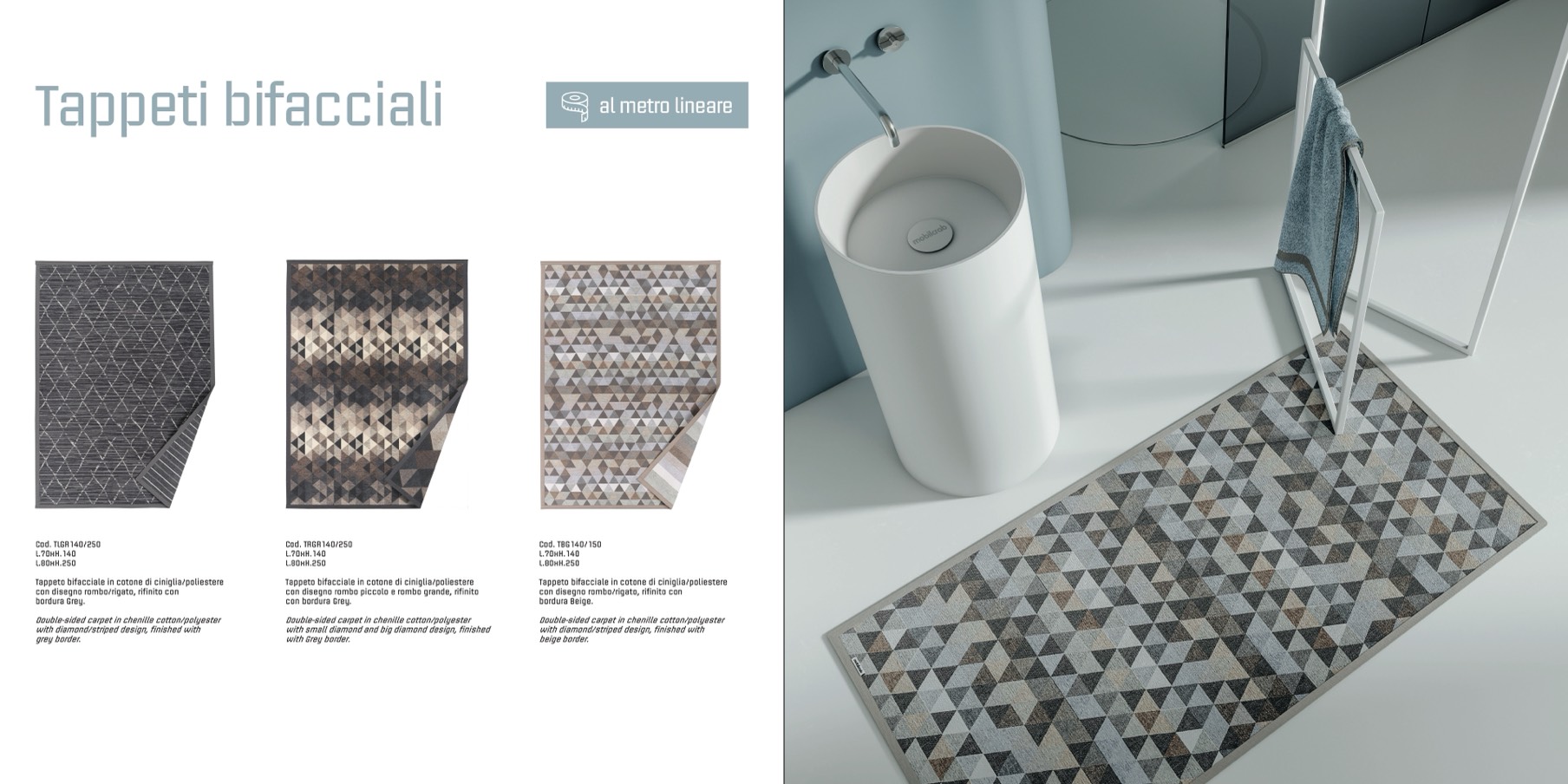 Double-sided carpet in chenille cotton/polyester