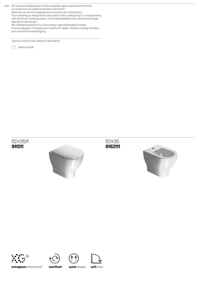 346 Wc a terra predisposto per scarico a parete oppure a pavimento tramite