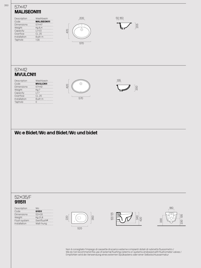 Non è consigliato l’impiego di cassette di scarico esterne o impianti dotati di rubinetto flussometro /