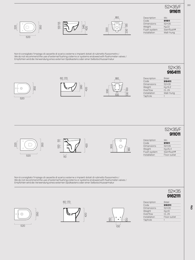 Non è consigliato l’impiego di cassette di scarico esterne o impianti dotati di rubinetto
