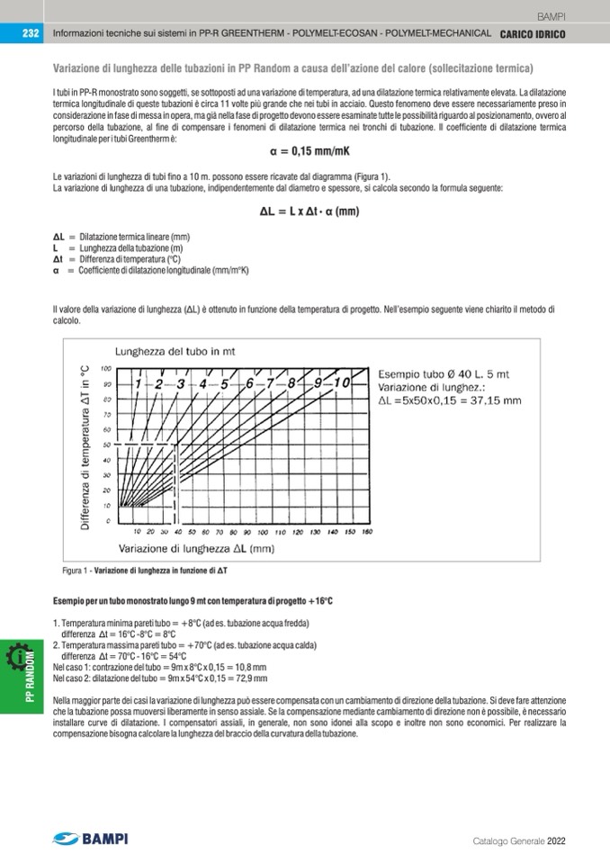 Variazione di lunghezza delle tubazioni in PP Random a causa dell’azione del calore (sollecitazione termica)