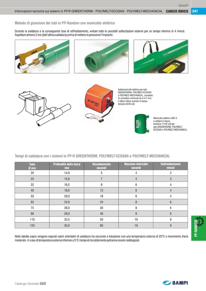 Tempi di saldatura con i sistemi in PP-R GREENTHERM, POLYMELT-ECOSAN e POLYMELT-MECHANICAL