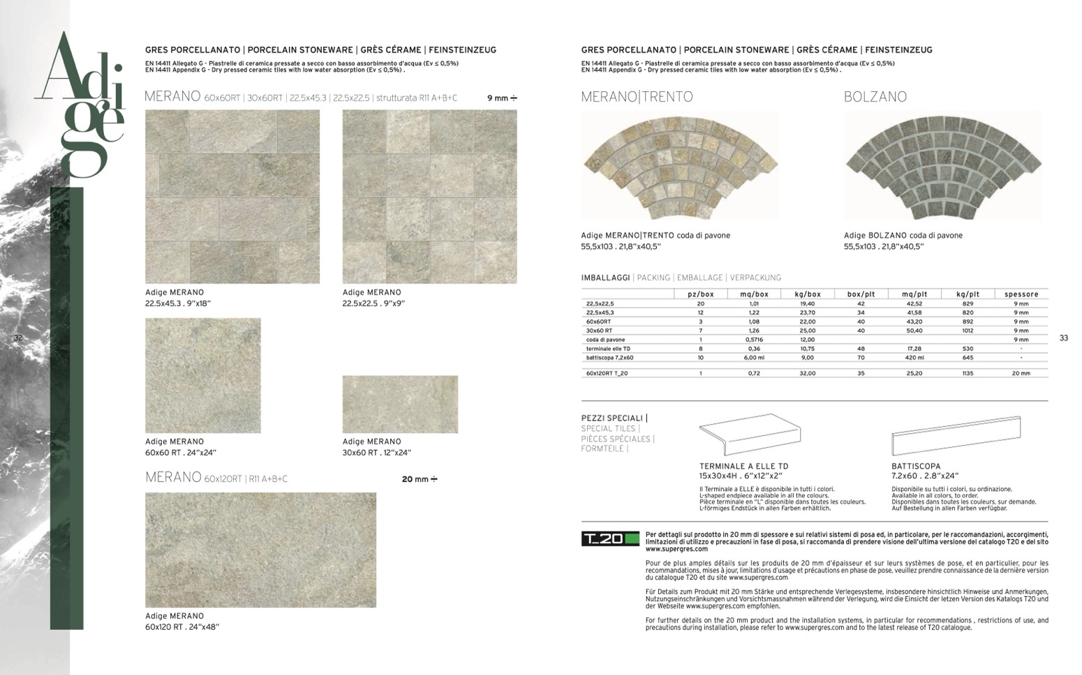 Per dettagli sul prodotto in 20 mm di spessore e sui relativi sistemi di posa ed, in particolare, per le raccomandazioni, accorgimenti,