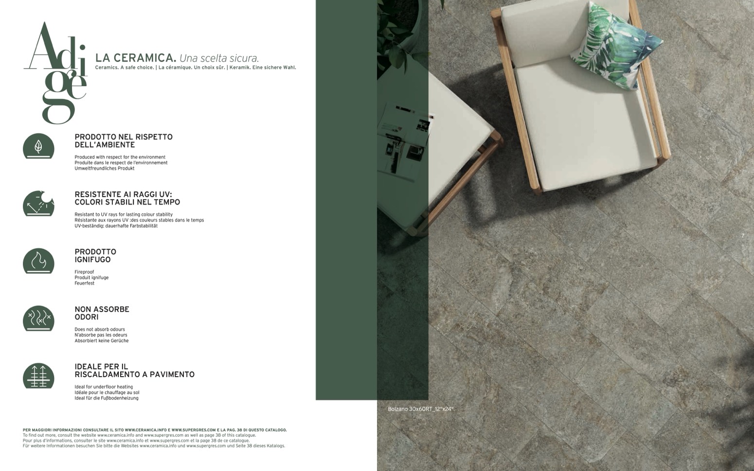 To find out more, consult the website www.ceramica.info and www.supergres.com as well as page 38 of this catalogue.