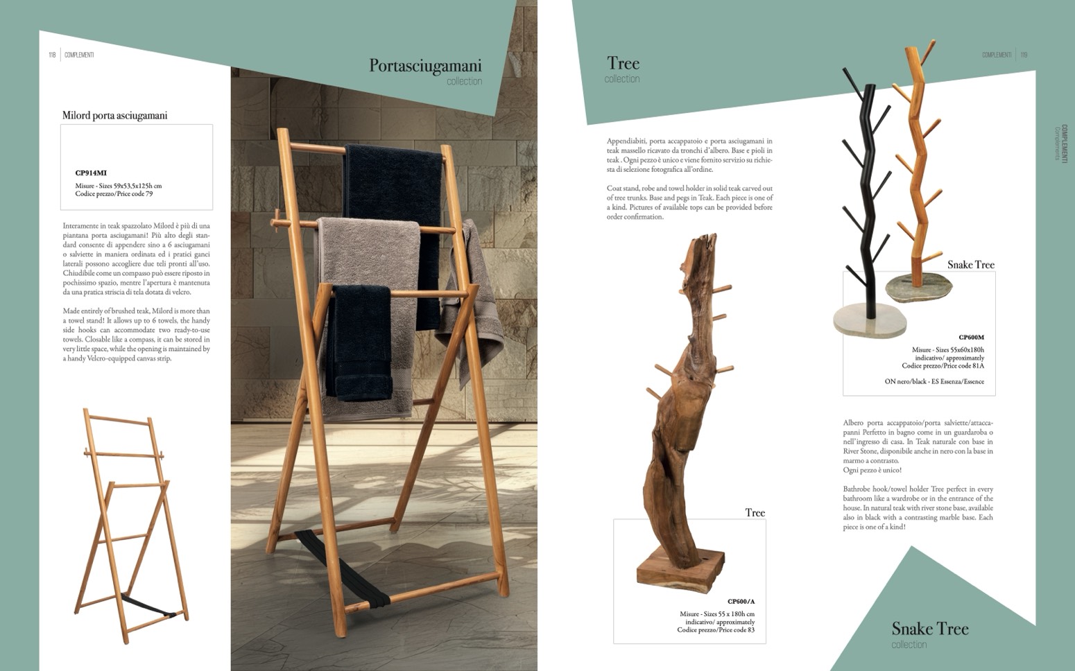 teak . Ogni pezzo è unico e viene fornito servizio su richie-