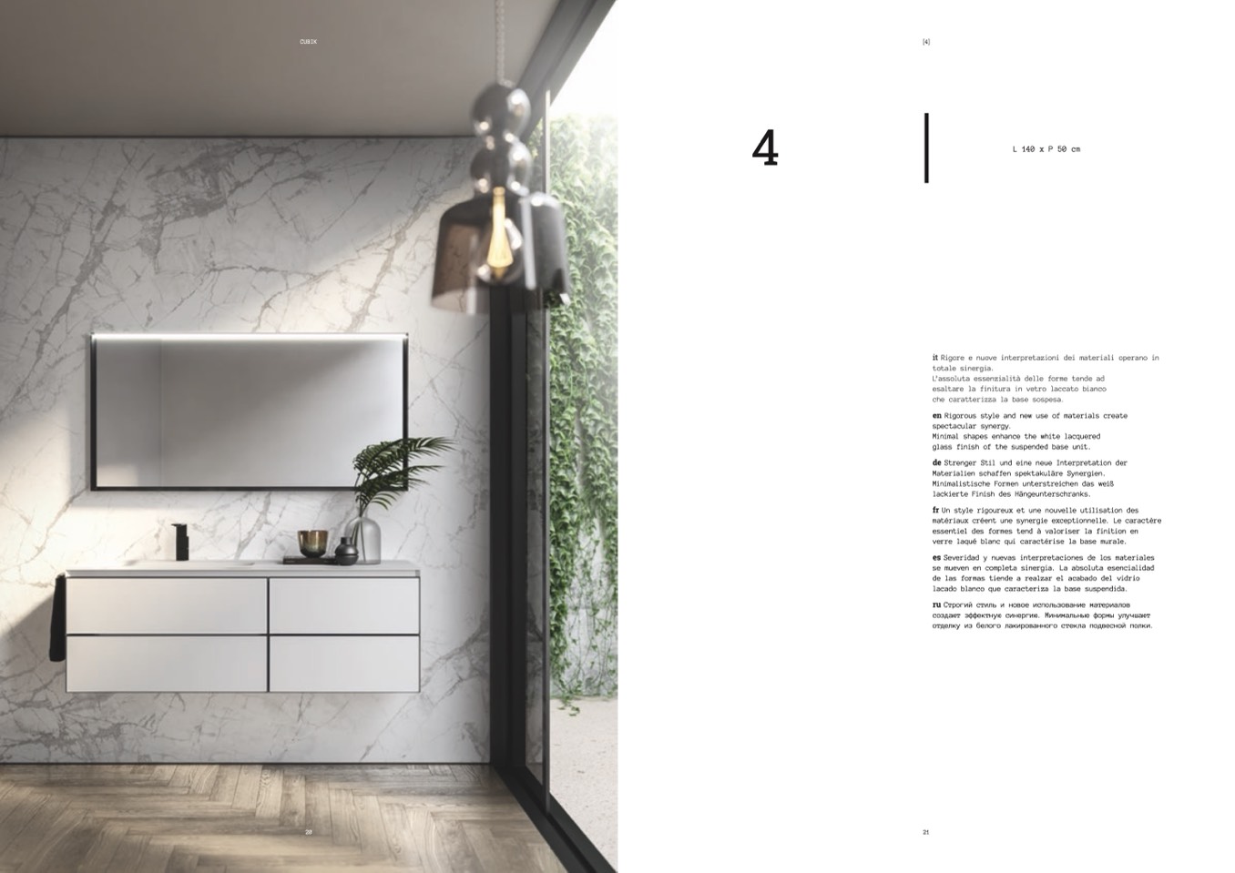 glass finish of the suspended base unit.