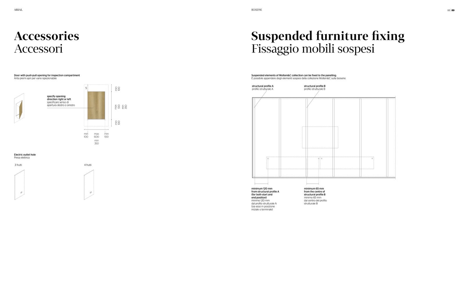 Suspended elements of Molteni&C collection can be fixed to the panelling.