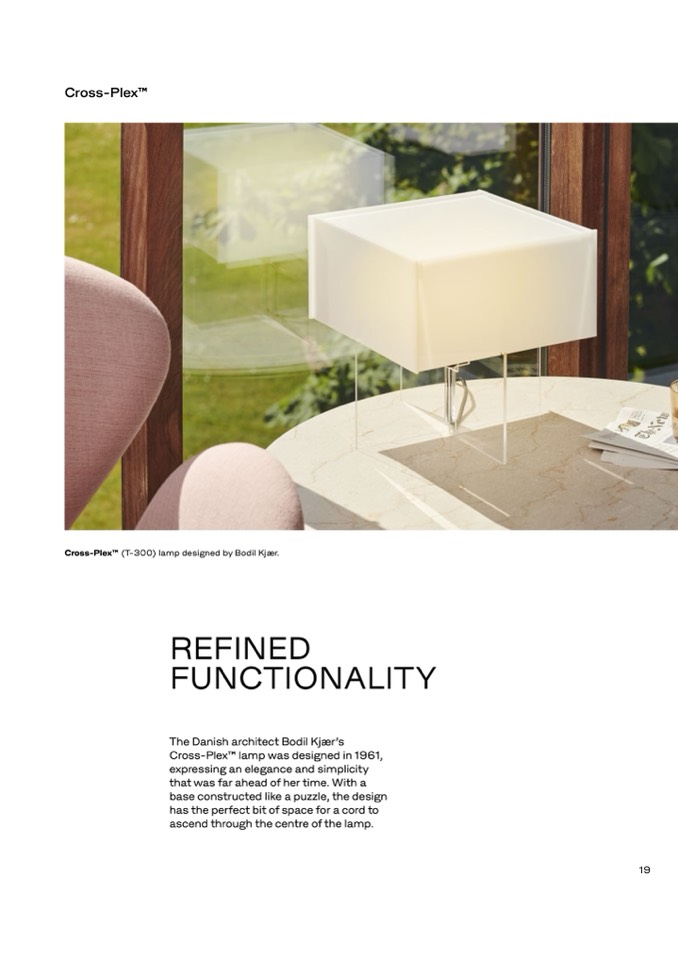 Cross-PlexTM (T-300) lamp designed by Bodil Kjær.