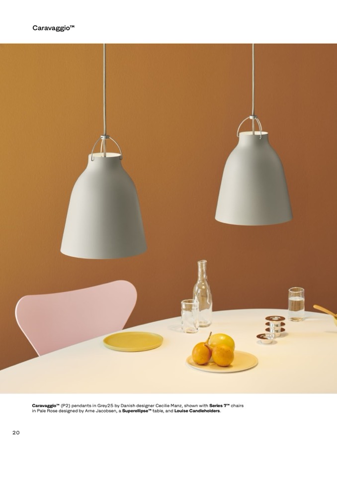CaravaggioTM (P2) pendants in Grey25 by Danish designer Cecilie Manz, shown with Series 7TM chairs