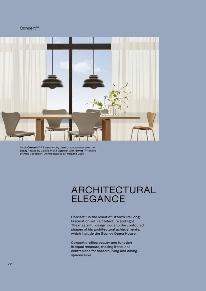 Black ConcertTM P3 pendant by Jørn Utzon, shown over the