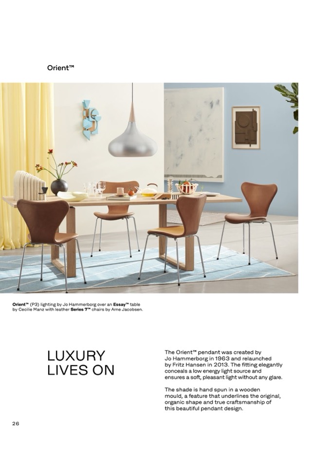 by Fritz Hansen in 2013. The fitting elegantly