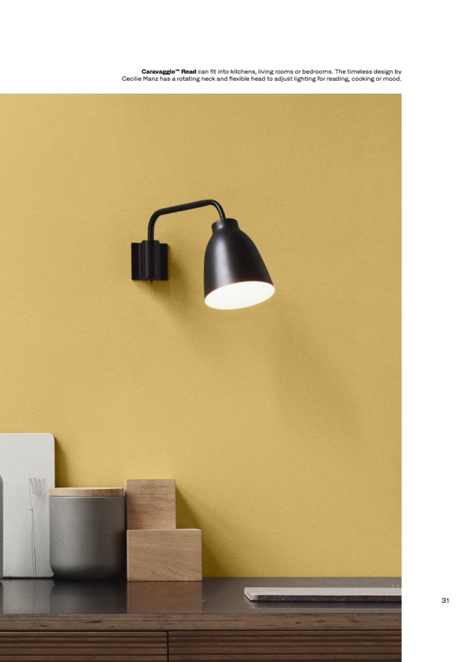 CaravaggioTM Read can fit into kitchens, living rooms or bedrooms. The timeless design by