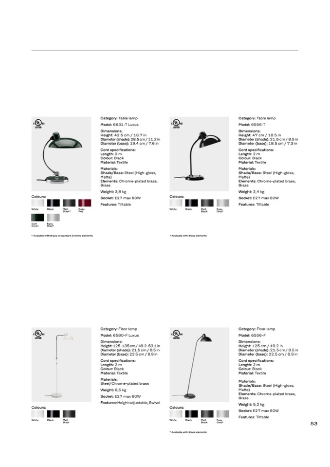 * Available with Brass or standard Chrome elements