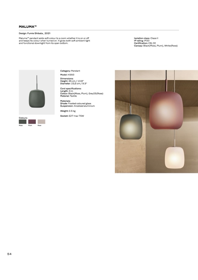 MalumaTM pendant adds soft colour to a room whether it is on or off