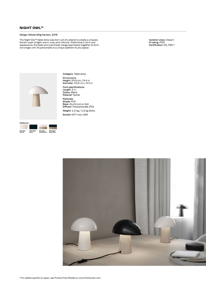 ↗ For details specific to Japan, see Product Fact Sheets on www.fritzhansen.com