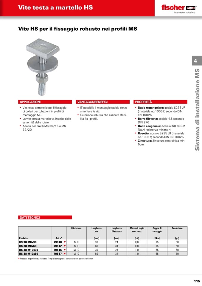 ▼ Prodotto disponibile su richiesta. Tempi di consegna da concordare con personale fischer.