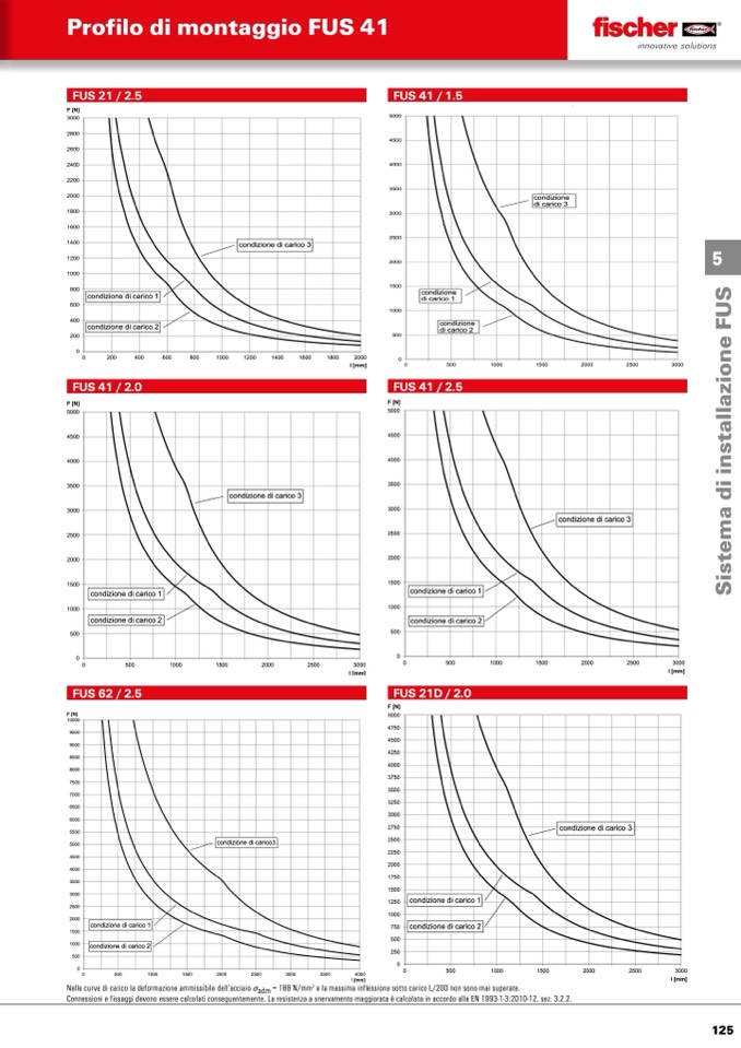 Nelle curve di carico la deformazione ammissibile dell‘acciaio σadm = 188 N/mm