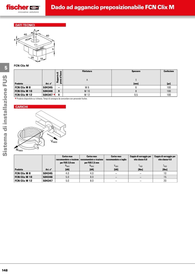 ▼ Prodotto disponibile su richiesta. Tempi di consegna da concordare con personale fischer.