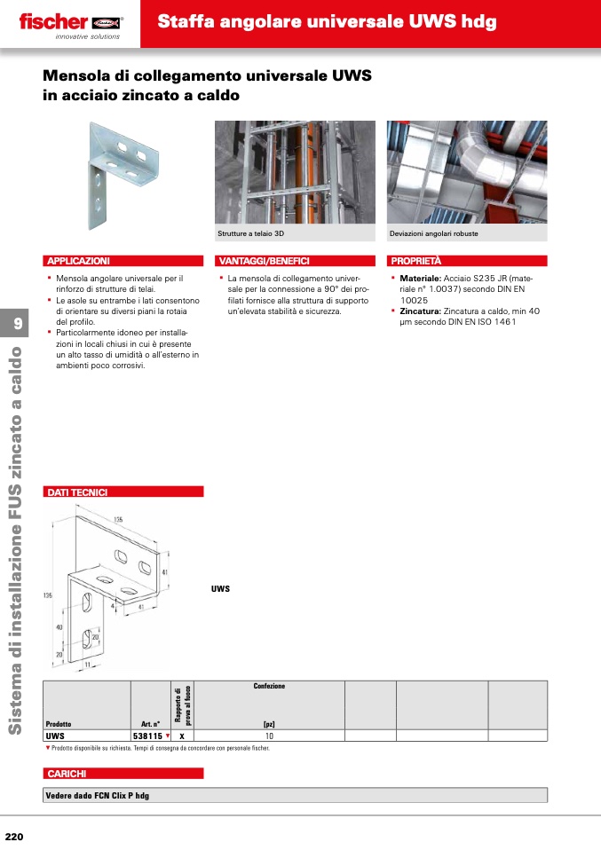 ▼ Prodotto disponibile su richiesta. Tempi di consegna da concordare con personale fischer.