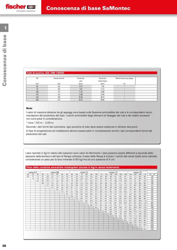 I pesi riportati in kg/m relativi alle tubazioni sono valori di riferimento. I pesi possono essere differenti a seconda dello