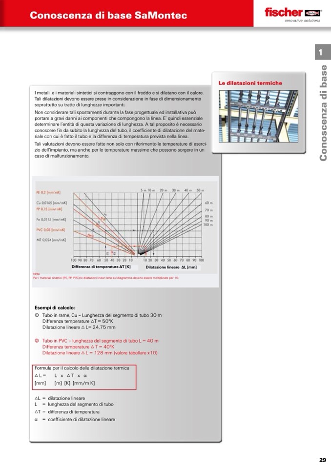 Per i materiali sintetici (PE, PP, PVC) le dilatazioni lineari lette sul diagramma devono essere moltiplicate per 10.