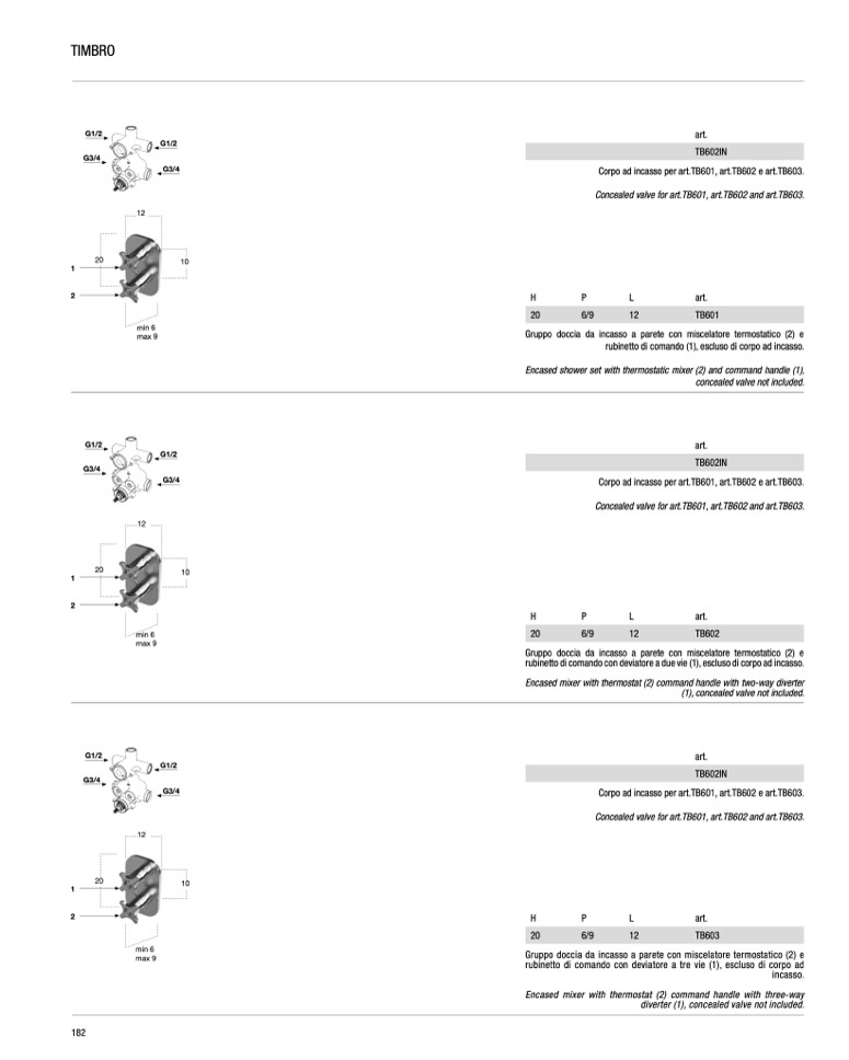 Concealed valve for art.TB601, art.TB602 and art.TB603.