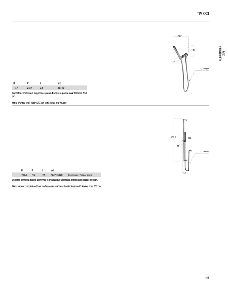 Doccetta completa di asta scorrevole e presa acqua separata a parete con