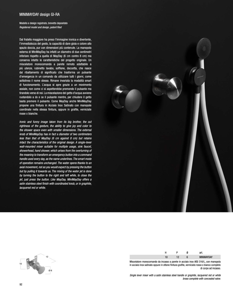 Miscelatore monocomando da incasso a parete in acciaio inox AISI 316/L, con manopola