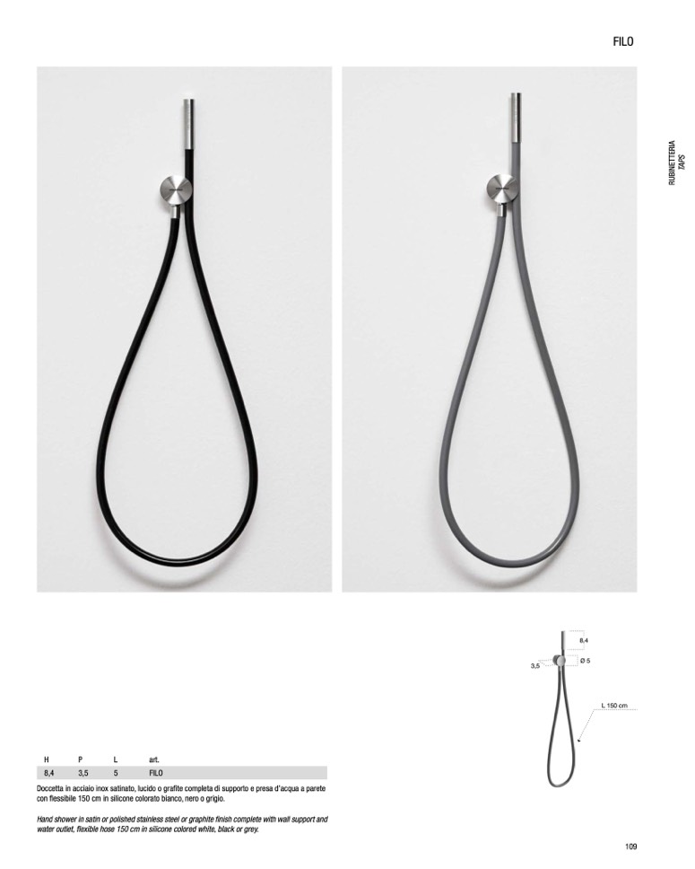 con flessibile 150 cm in silicone colorato bianco, nero o grigio.