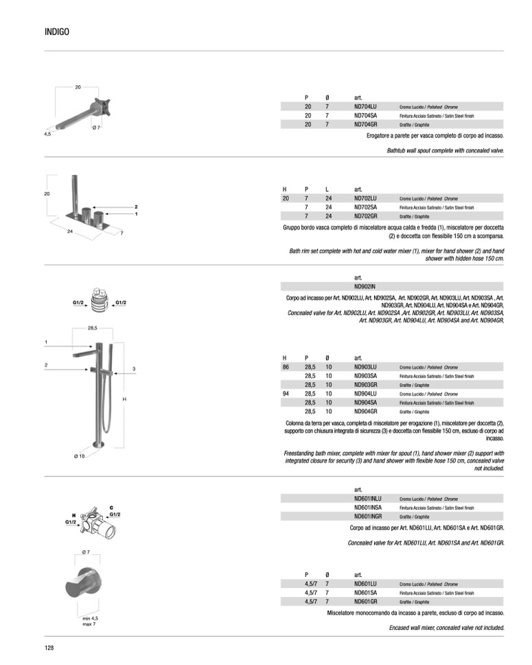 Art. ND903GR, Art. ND904LU, Art. ND904SA and Art. ND904GR,