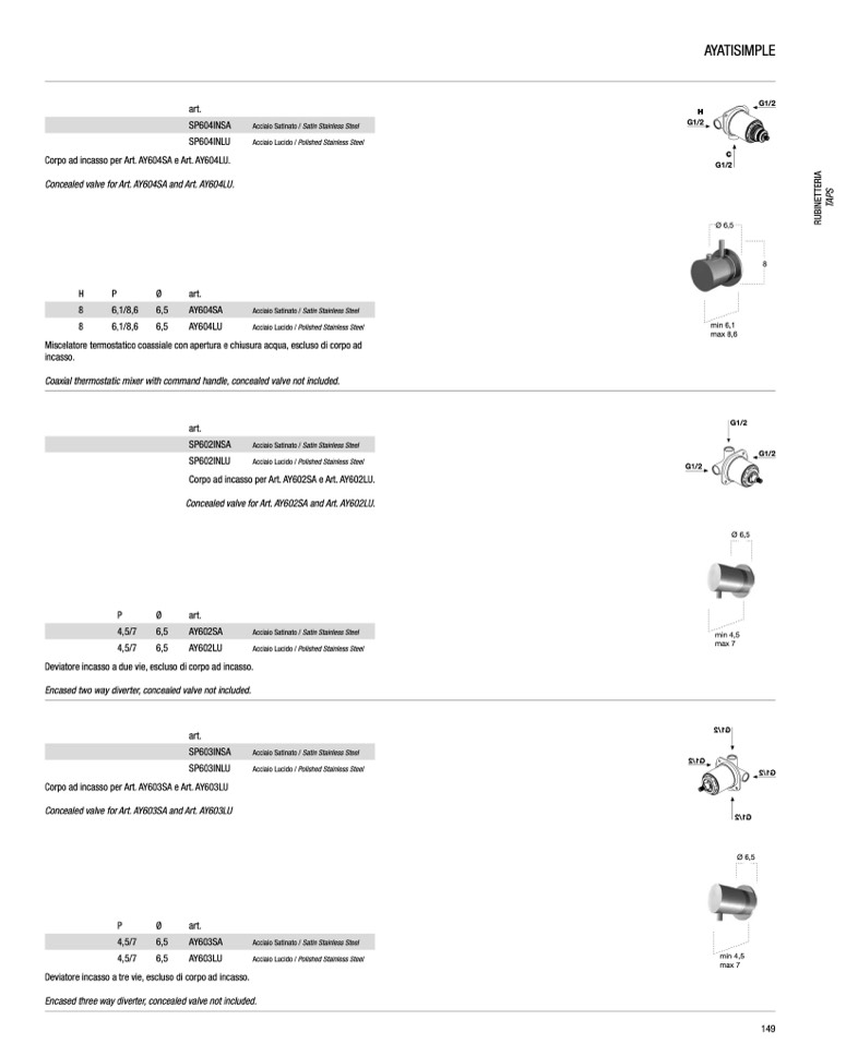 Concealed valve for Art. AY602SA and Art. AY602LU.