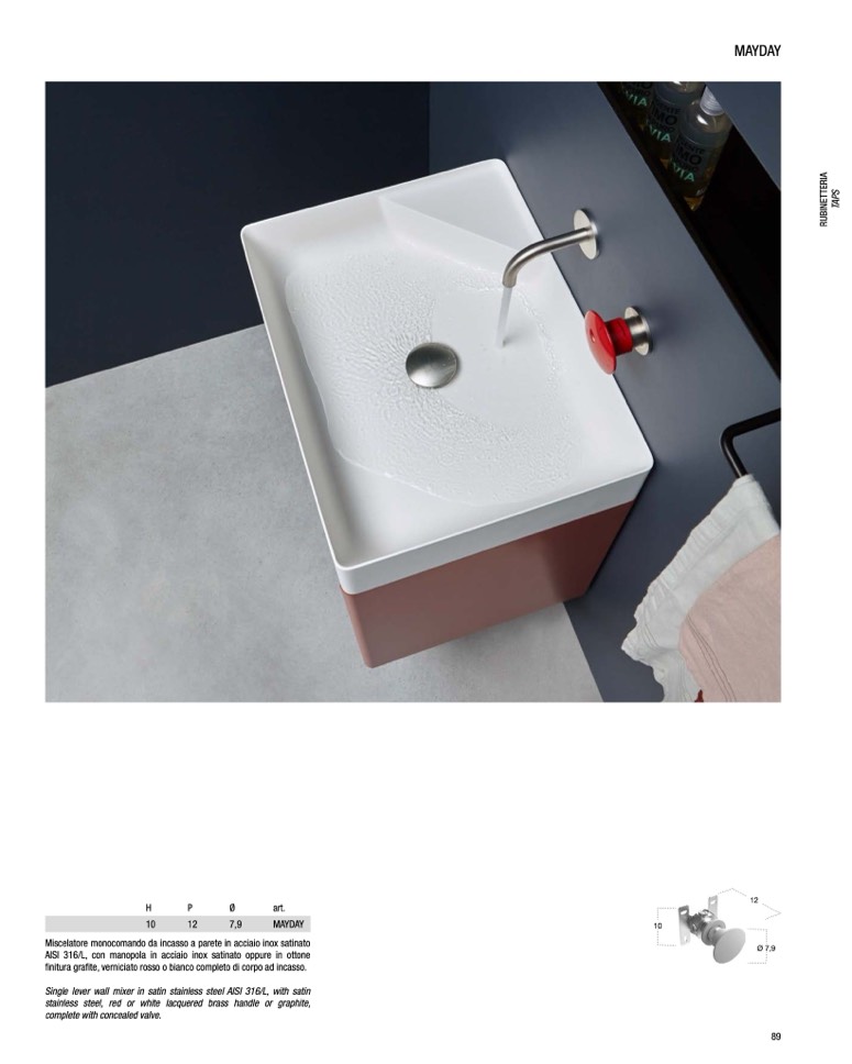 finitura grafite, verniciato rosso o bianco completo di corpo ad incasso.