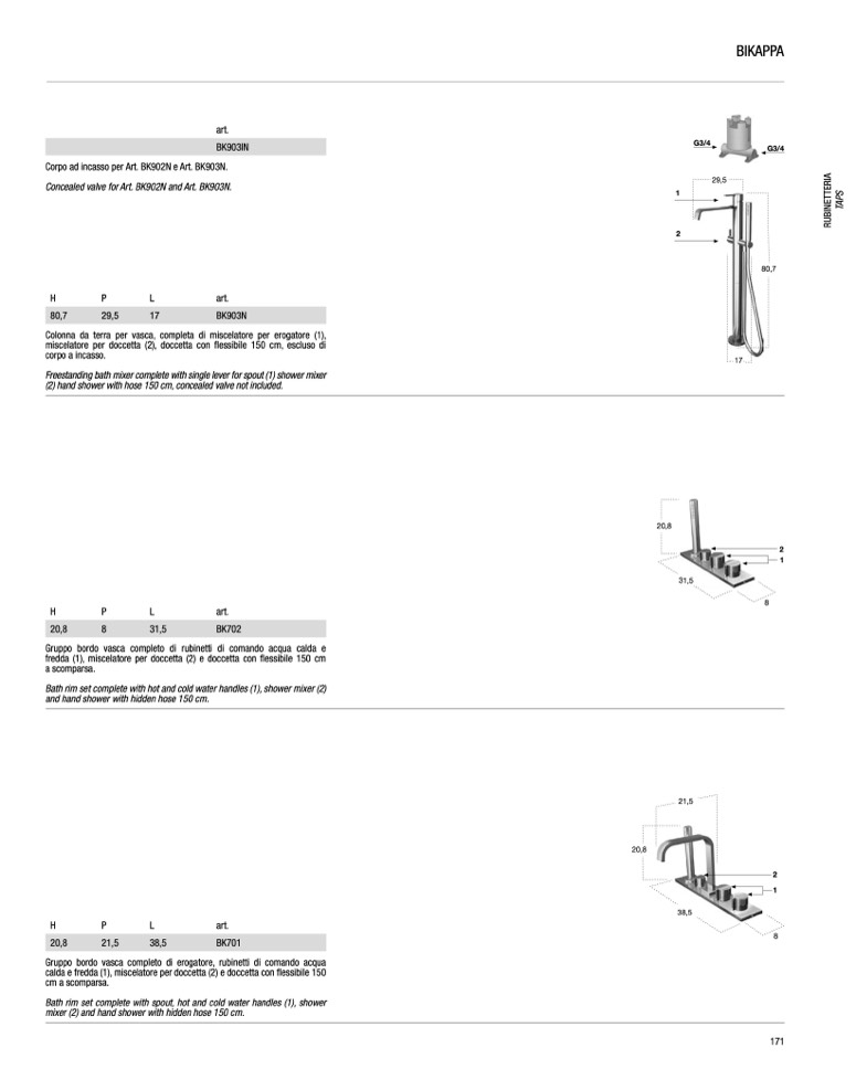 Concealed valve for Art. BK902N and Art. BK903N.