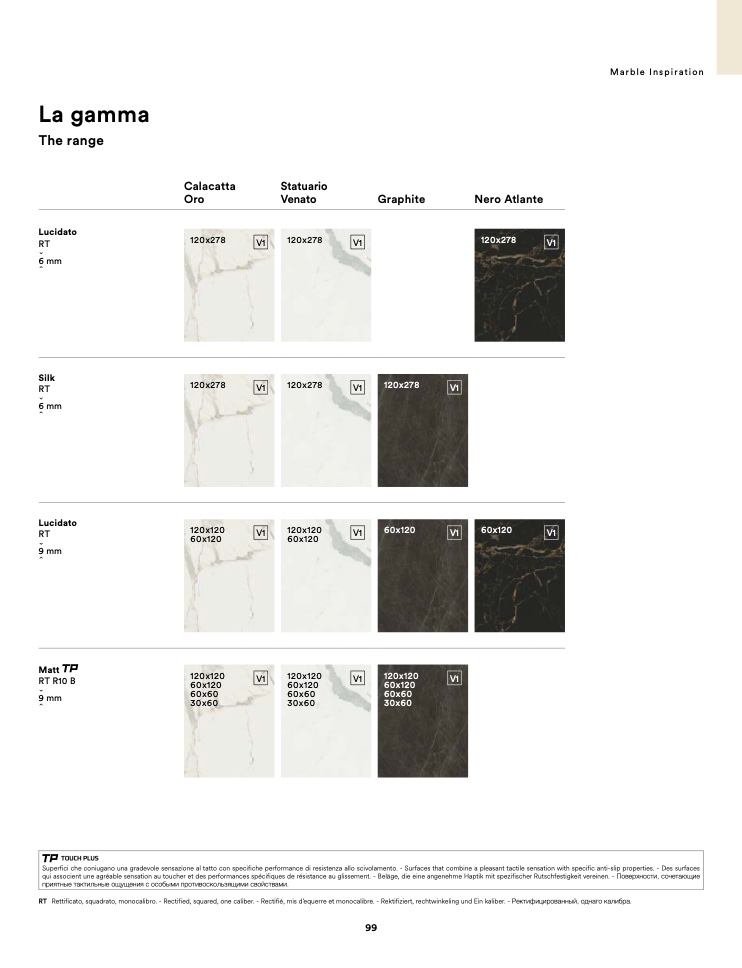 Superfici che coniugano una gradevole sensazione al tatto con specifiche performance di resistenza allo scivolamento. - Surfaces that combine a pleasant tactile sensation with specific anti-slip properties. - Des surfaces