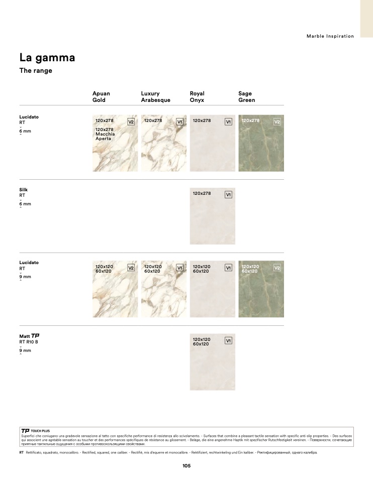 Superfici che coniugano una gradevole sensazione al tatto con specifiche performance di resistenza allo scivolamento. - Surfaces that combine a pleasant tactile sensation with specific anti-slip properties. - Des surfaces